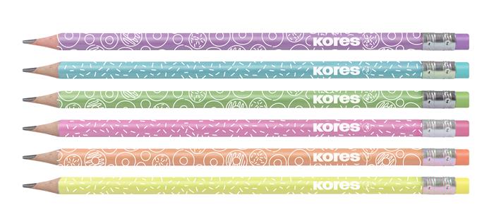 Grafitová ceruzka, sada, s gumou, HB, trojhranná, KORES "Grafitos Style Pastel"