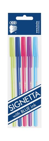 Guľôčkové pero, 0,7 mm, s vrchnákom, 5 rôznych farieb tela, ICO "Signetta Mix", modré