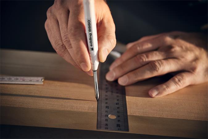 - vďaka dlhému (42 mm) a tenkému (5,5 mm) hrotu možno popisovač použiť aj na úzkych alebo iných ťažko dostupných miestach, napr. na značenie otvorov alebo rezných hrán