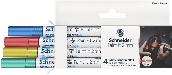 Akrylový popisovač, sada, 2 mm, SCHNEIDER "Paint-It 011", 4 rôzne farby