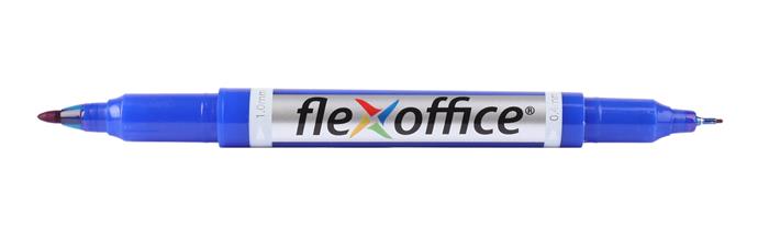 Permanentný popisovač, 0,4/1,0 mm, kužeľový, obojstranný, FLEXOFFICE "PM01", modrý