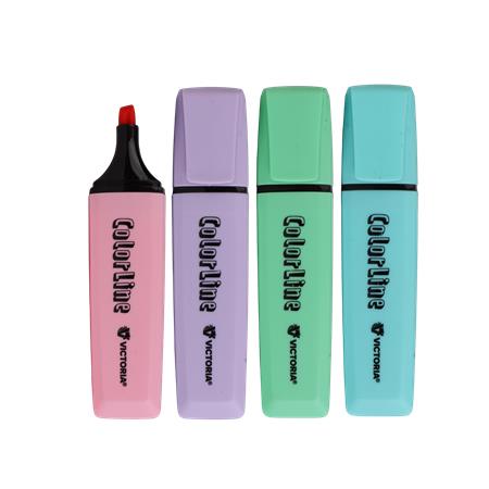Zvýrazňovač, sada, 1-5 mm, VICTORIA OFFICE, "ColorLine", 4 rôzne pastelové farby