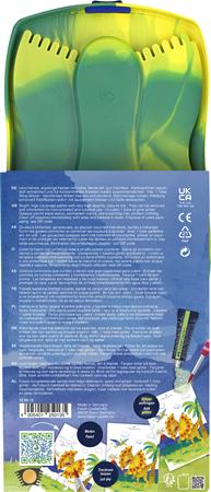 Kreatívna zábava pre všetkých fanúšikov dinosaurov! -ideálny pre všetky procesy farbenia a miešania - spojiteľné a odnímateľné farby -lesklé -vysoká krycia schopnosť -ľahko miešateľné farby -odstrániteľné mydlom a vlažnou vodou -obsah sady: lesklé trblietavé lepidlo + nálepka dinosaura