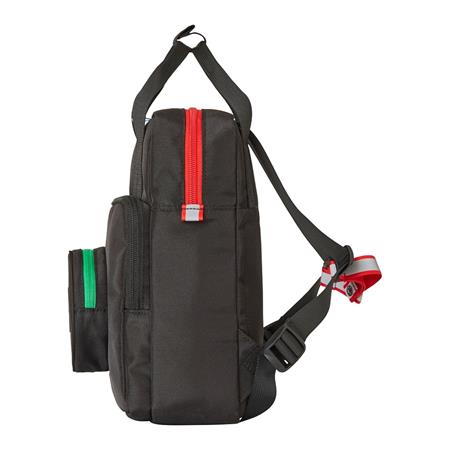 LEGO vzorovaný batoh je skvelou voľbou na drobné každodenné veci pre deti. -1 hlavný priečinok -1 menšie vrecko na zips na cennosti -1 predné vrecko na zips pre rýchly prístup -reflexné prvky na všetkých stranách -polstrovaná zadná časť zdobená LEGO vzorom -nastaviteľný hrudný popruh -bočný D-krúžok - základná farba je čierna, časti výrobky v modrej, červenej a zelenej farbe
