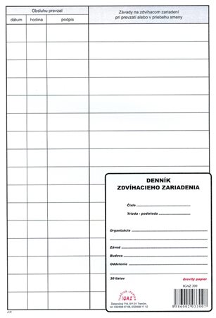 Hlavná stránkaKancelárske potrebyTlačiváTlačiváDenník zdvíhacieho zariadenia A4-30 list