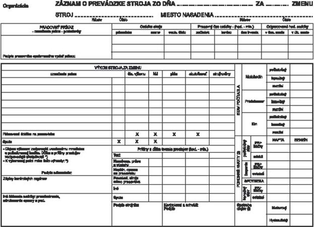 Záznam o prevádzke stroja, A5 číslovaný