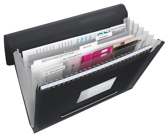 Harmoniková doska, A4, PP, 6 priehradiek, ESSELTE "Vivida", čierna