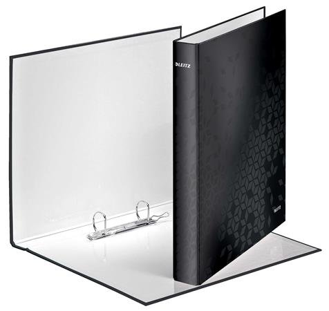 Krúžkový šanón, 2 D krúžky, 40 mm, A4 Maxi, kartón, LEITZ "Wow", čierna