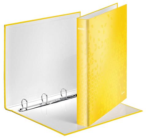 Krúžkový šanón, 4 D krúžky, 40 mm, A4 Maxi, kartón, LEITZ "Wow", žltá