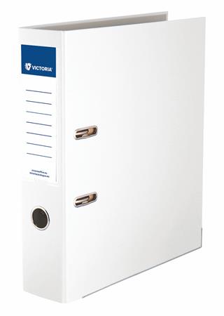 Pákový šanón, 75 mm, A4, PP/kartón, s ochranným spodným kovaním, VICTORIA OFFICE  "Basic", biely