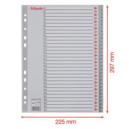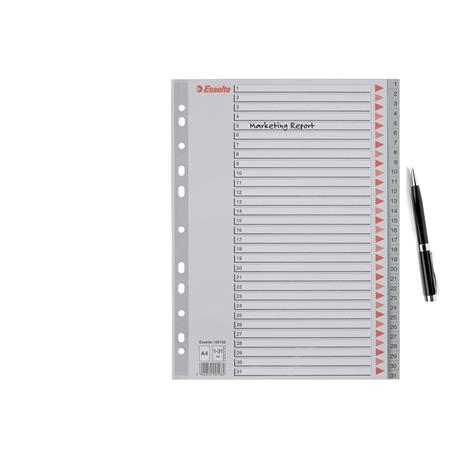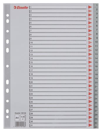 Register, plastový, A4, 1-31, ESSELTE, sivý