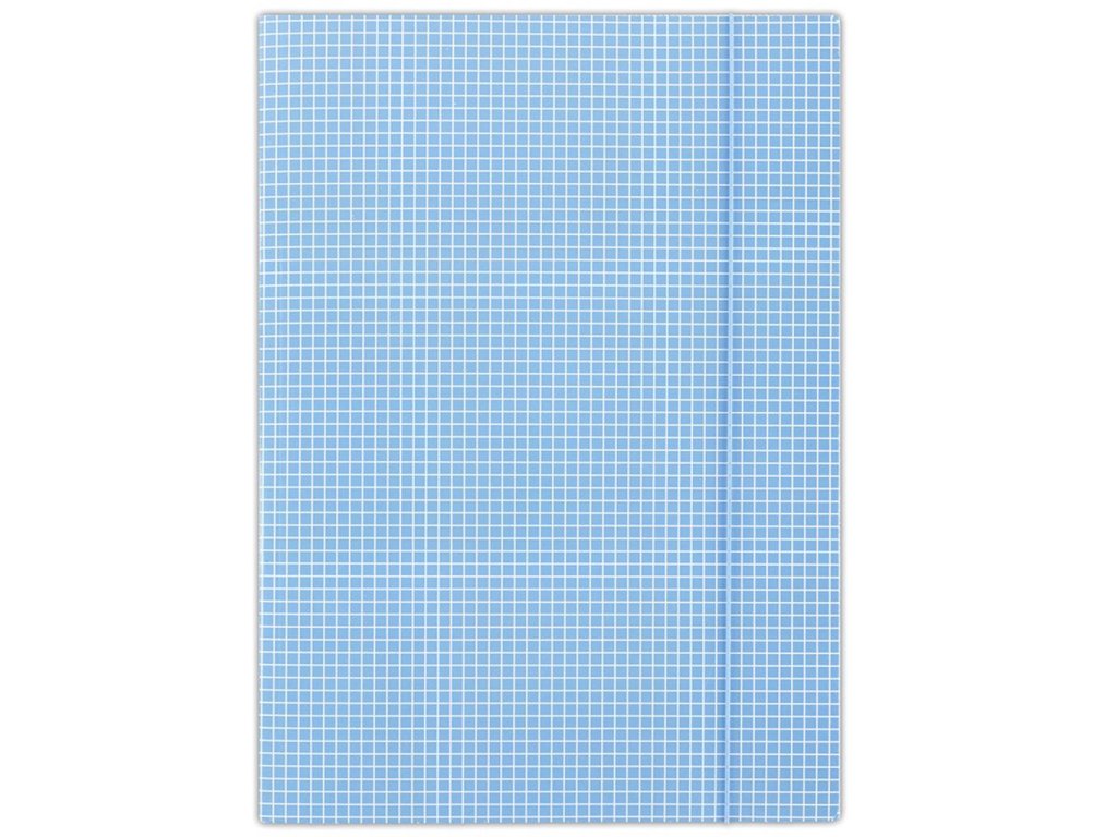Kartonový obal vyrobený z lepenky s hmotnosťou 400g. Jednostranne potiahnutý vysoko lesklým tlačovým lakom, okrúhla vertikálna guma vo farbe obalu chráni obsah pred vykĺznutím. Károvaná potač. Formát: A4. Farba modrá. Rozmery 232 x 317 mm.Dodatočné parametre