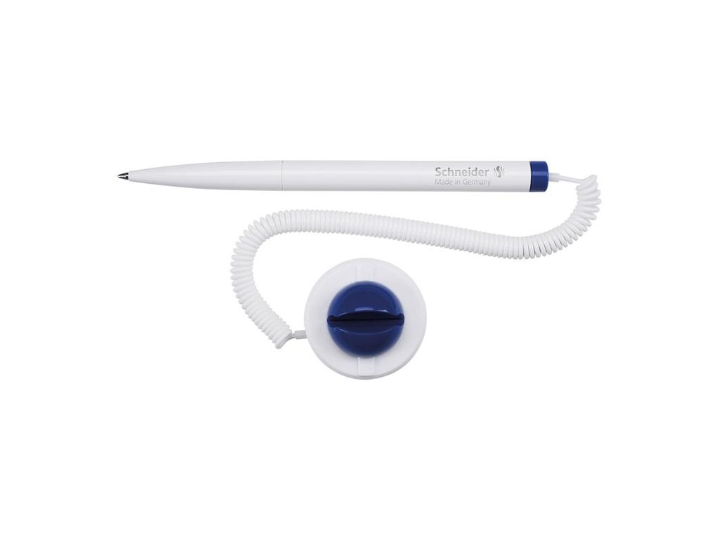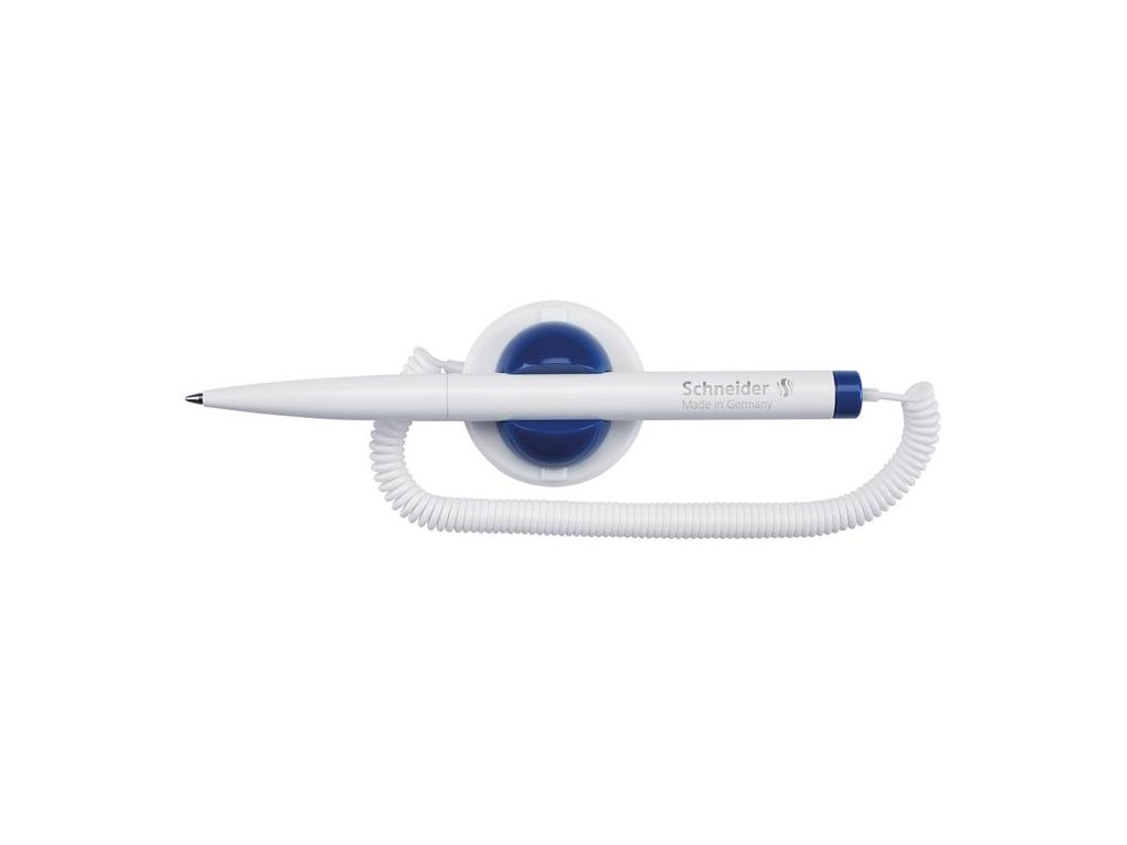 vhodné na použitie na stole alebo na pulte spoľahlivá kvalita matné biele telo pera plastová podložka sa dá zafixovať modrý atrament vymeniteľná náplň (SCHNEIDER „Express 775”)Dodatočné parametre