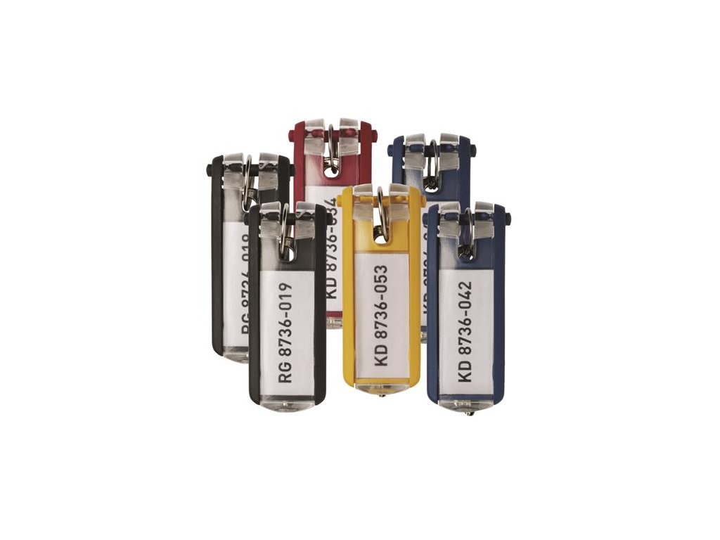 Tento jedinečný plastový prívesok na kľúče umožňuje dokonalý prehľad o kľúčoch v skrinke vďaka tomu, že kľúče sú na plocho uložené za kľúčenkou a popisovacie štítky sú tak kedykoľvek čitateľné. Kľúčenka je speciálne designovaná, aby bola zavesená na háčikoch a špeciálnych koľajniciach, jedine táto kombinácia zabezpečí, že kľúčenka visí nehybne na svojom mieste. Pre vloženie popisovacieho štítku možno klip ľahko otvoriť bez nutnosti zbavenia sa závesného krúžku. Na uľahčenie popisu slúži bezplatný softvér na www.durable.de. KEY CLIP - Kľúčenka je v ponuke v štyroch atraktívnych farbách (žltá, červená, modrá a čierna) - farbu nie je možné vybrať.Dodatočné parametre