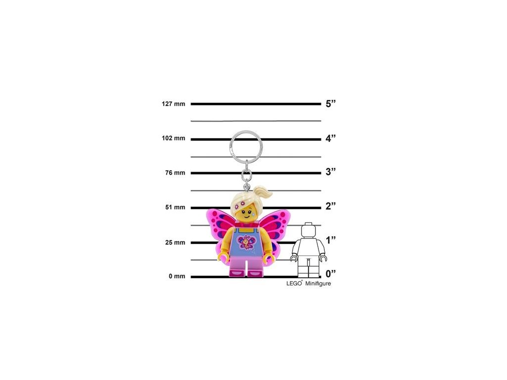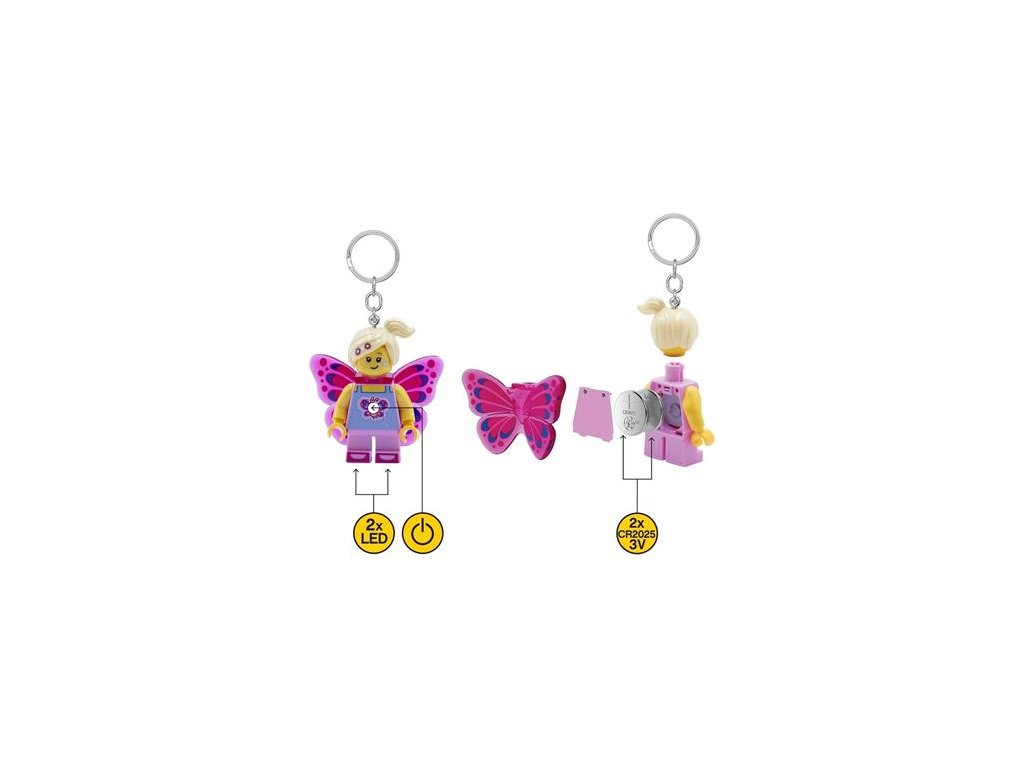 LEGO® Classic Butterfly Girl svietiaca kľúčenka! výška: 7,5 cm (ruky a nohy sú odpojiteľné) -funguje na 2x CR2025/3V batérie (sú súčasťou balenia) -odporúčaný vek: 6+Dodatočné parametre
