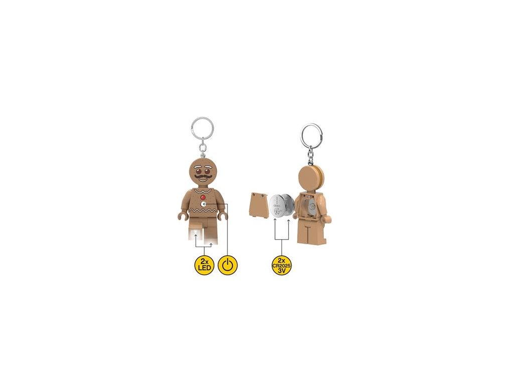 LEGO® Classic Gingerbread Man svietiaca kľúčenka! výška: 7,5 cm (ruky a nohy sú odpojiteľné) -funguje na 2x CR2025/3V batérie (sú súčasťou balenia) -odporúčaný vek: 6+Dodatočné parametre