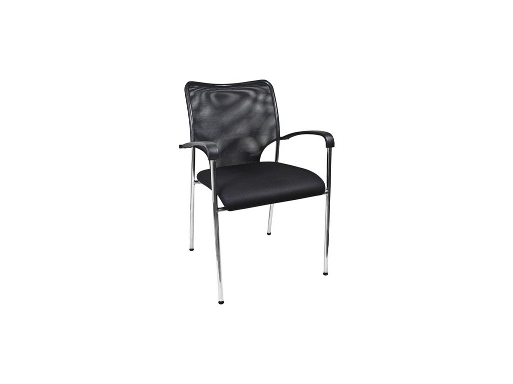 chrómová oceľová kostra materiál operadla: sieťovina materiál čalúnenia: mesh plastové opierky rúk stohovateľné nosnosť: 110 kg farba: čierna Rozmery: šírka sedu: 45 cm hĺbka sedu: 48 cm výška sedu: 47 cm operadlo: 38 cm celková šírka: 85 cmDodatočné parametre