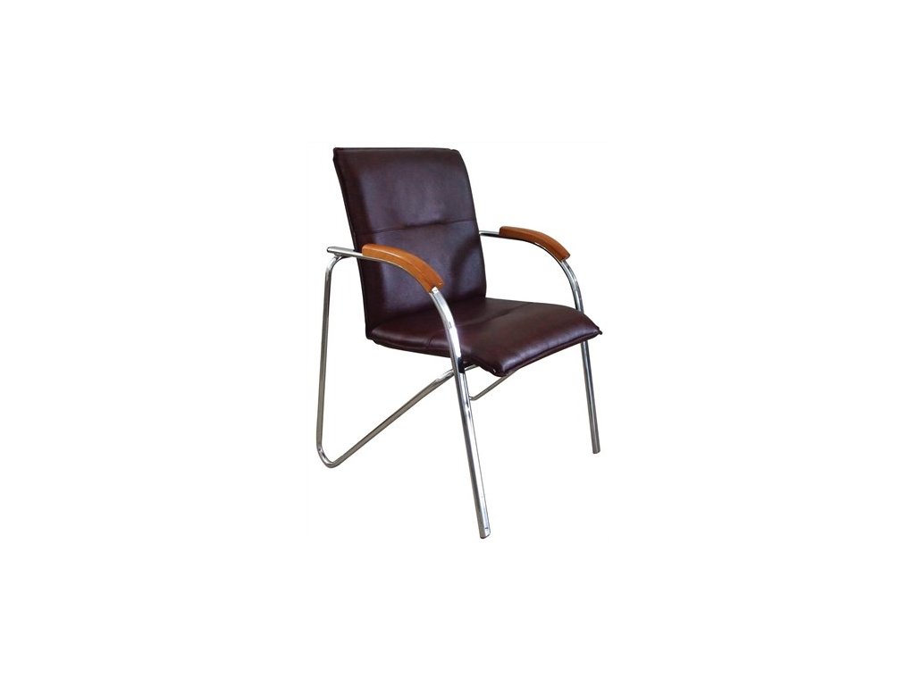 Konferenčná stolička, koženka, chrómová oceľ, opierka rúk: čerešňa, "Sabina", čierna