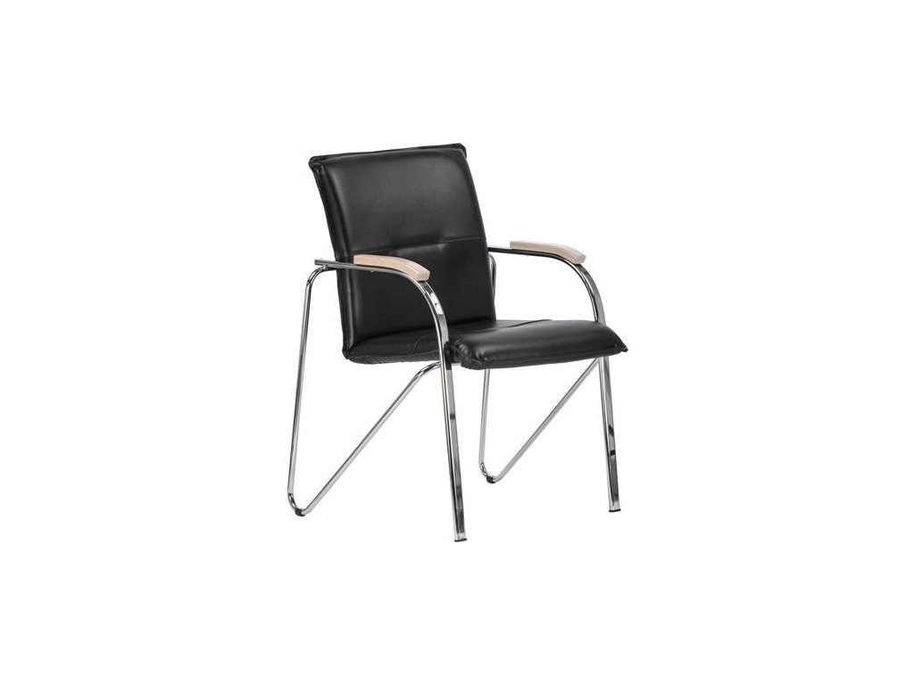 Konferenčná stolička, koženka, chrómovaná konštrukcia, lakťová opierka z buku, "Sabina", čierna
