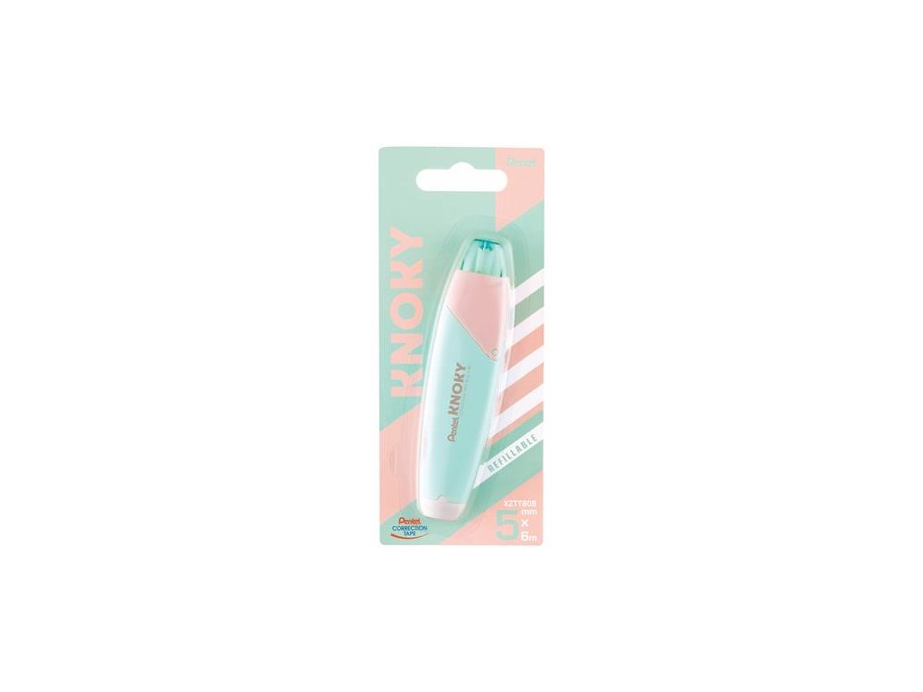 Korekčný roller, 5 mm x 6 m, naplniteľný, PENTEL "Knoky", svetlozelený-broskyňový