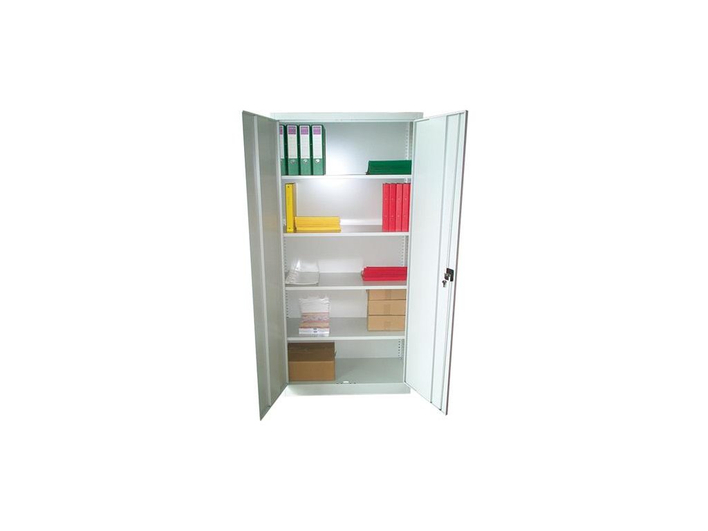 Kovová skriňa, dvojdverová, s poličkami, MAYAH, sivá