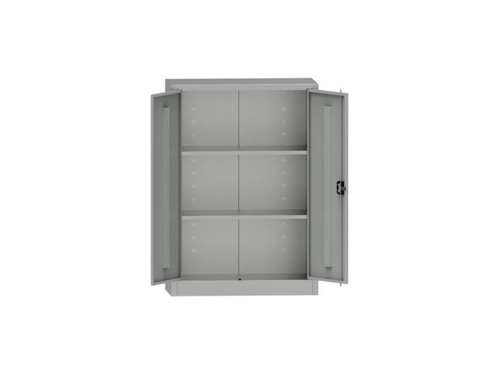 masívna odkladacia skriňa vyrobená z kvalitnej ocele v dvojdverovom precedení s 2 policami nosnosť políc: 80 kg/polica police sú nastaviteľné: po 2,5 cm povrchová úprava práškovou farbou typ zámku: dvojbodový bezpečnostný zámok nosnosť skrine: 400 kg farba: RAL7035 svetlosiváDodatočné parametre