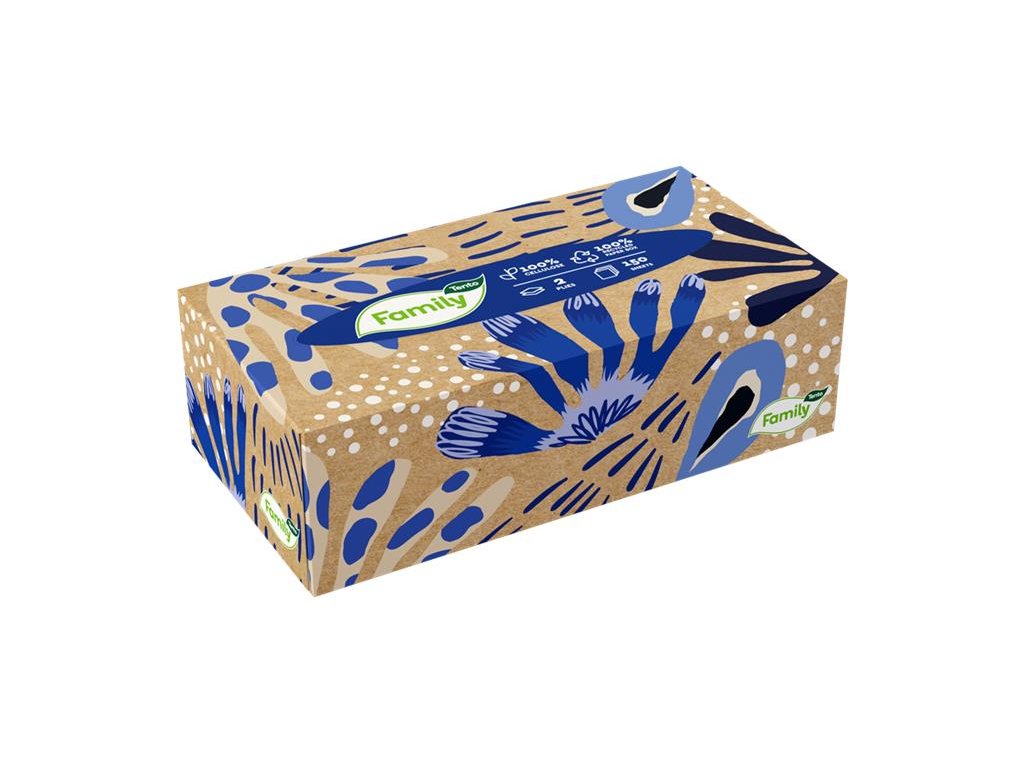 Produktový rad Tento Family odporúčame tým, ktorí hľadajú jednoduché, no zároveň užitočné hygienické riešenia pre svoj domov. Kozmetické obrúsky Tento Family sú balené v rôznych baleniach, v pôvabne navrhnutých škatuľkách z recyklovaného papiera. Boxy sú navrhnuté tak, aby ste ich mohli umiestniť kdekoľvek vo vašej domácnosti, na stole aj na kuchynskej linke. - počet hárkov: 150 utierok/krabica - zmiešané štyri rôzne vzory, vzor nie je možné vybraťDodatočné parametre