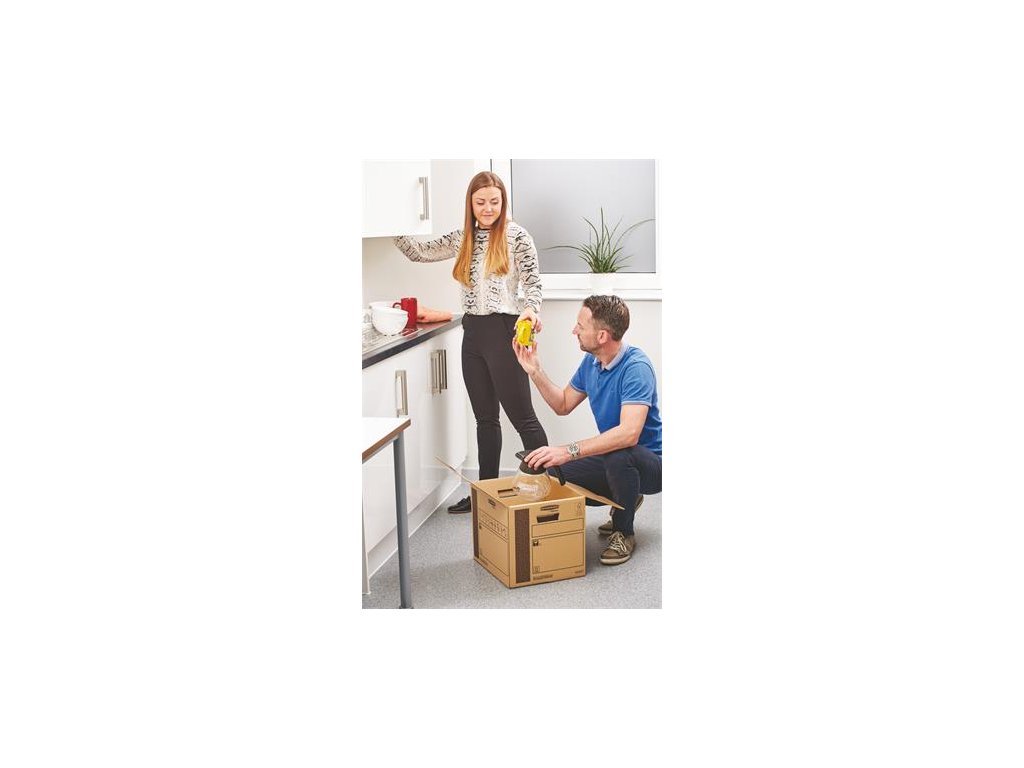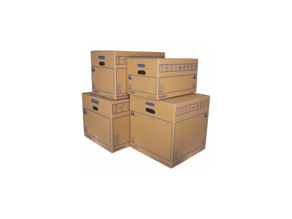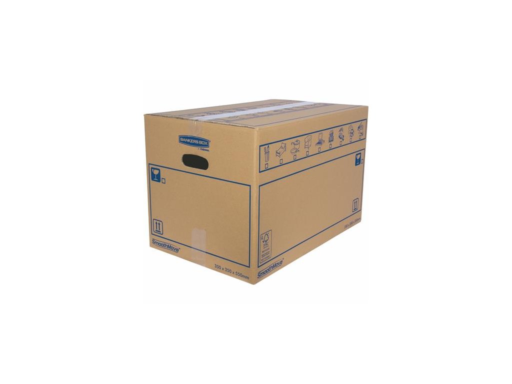 Krabica s dvojitou hrúbkou pre uľahčenie uloženia vecí pri sťahovaní. Vlastnosti: predtlačené ikony a štítky, ktoré uľahčia identifikáciu; silná vlnitá lepenka s dvojitou hrúbkou; voliteľné perforovanie rukoväte; k uzavretiu je nutné použiť lepiacu pásku; materiál certifikovaný FSC Farba: prírodná Materiál: 100% recyklovateľná lepenka Rozmery: 35x35x55 cm (vnútorné)Dodatočné parametre