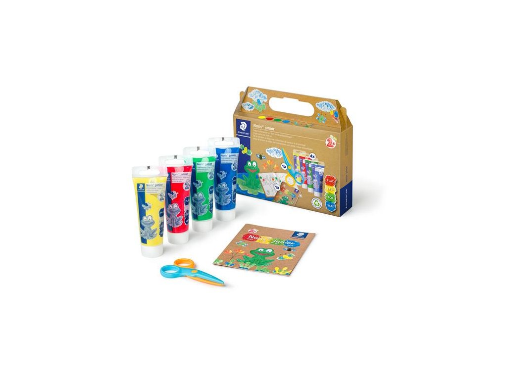 Noris® junior - Produkty, ktoré rastú s dieťaťom. Noris junior podporuje deti v rozvoji ich plného potenciálu podľa ich veku a potrieb. Učí tých najmenších pri hre, pričom je šetrné k životnému prostrediu a ich používanie je bezpečné. - hravá a zároveň rozvíjajúca súprava s prstovými farbami a remeselnými nápadmi pre malé deti - živé farby odolné voči svetlu, ktoré sa ľahko miešajú a rýchlo schnú - farba je dermatologicky testovaná - v prenosnej kartónovej krabici - odporúčaný vek dieťaťa: od 2 rokov Sada obsahuje: - 4 prstové farby (4x75 ml, v rôznych farbách) - 1 bezpečnostné nožnice - 1 zošit na kreslenie Značka: STAEDTLER Výrobca: STAEDTLER SE Adresa: Moosäckerstr. 3 , 90427 Nuremberg, Germany Web: http://www.staedtler.com Email: https://www.staedtler.com/intl/en/service/contact/Dodatočné parametre
