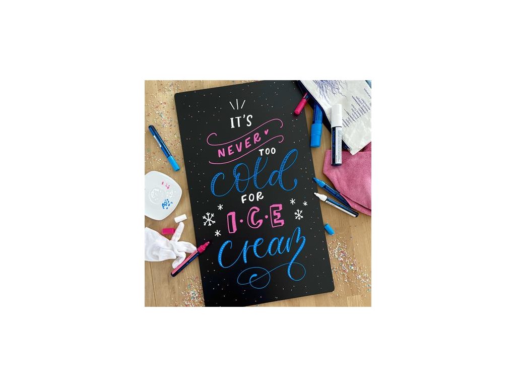 vhodné na všetky hladké povrchy (čierne a zelené tabule, výklady, pútače) vynikajúce na zdobenie okien farba uzáveru sa zhoduje s farbou náplne farba sa dá odstrániť mokrou handrou hrúbka písma: 2–3 mmDodatočné parametre
