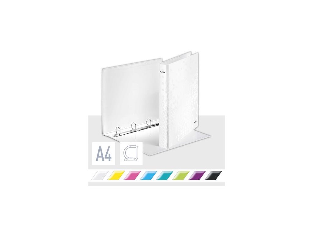 Krúžkový šanón, 4 D-krúžky, 40 mm, A4 Maxi, kartón, LEITZ "Wow", biela