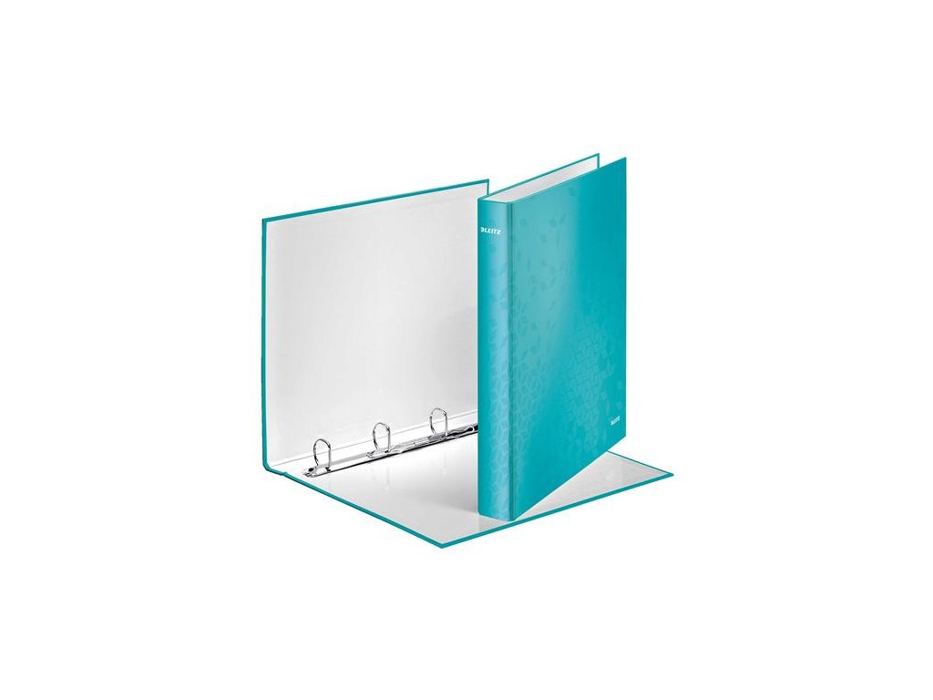 Krúžkový šanón, 4 D krúžky, 40 mm, A4 Maxi, kartón, LEITZ "Wow", ľadovo modrá