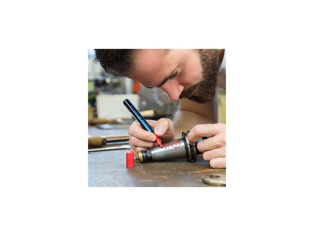 vhodné takmer na všetky povrchy (sklo, kov, porcelán, keramika, plast, guma, koža, papier, kartón) na alkoholovej báze (bez xylolu a toluolu) vodeodolný, nezotierateľný rýchloschnúci atrament vhodný aj do exteriérov farba uzáveru sa zhoduje s farbou náplne vyrobený ventilovou technológiou hrúbka písma: 1–3 mmDodatočné parametre