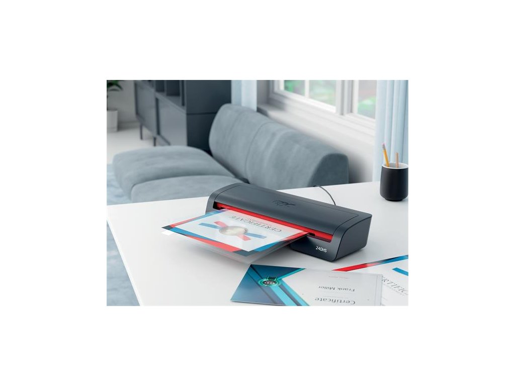 GBC 240HS je elegantné a efektívne riešenie pre každodenné laminovacie potreby. Vysokorýchlostný laminovač formátu A3 navrhnutý so zreteľom na štýl a výkon je ideálny pre domáce alebo domáce kancelárske použitie. Chráňte a uchovajte svoje dôležité dokumenty vždy v dokonalom prevedení.