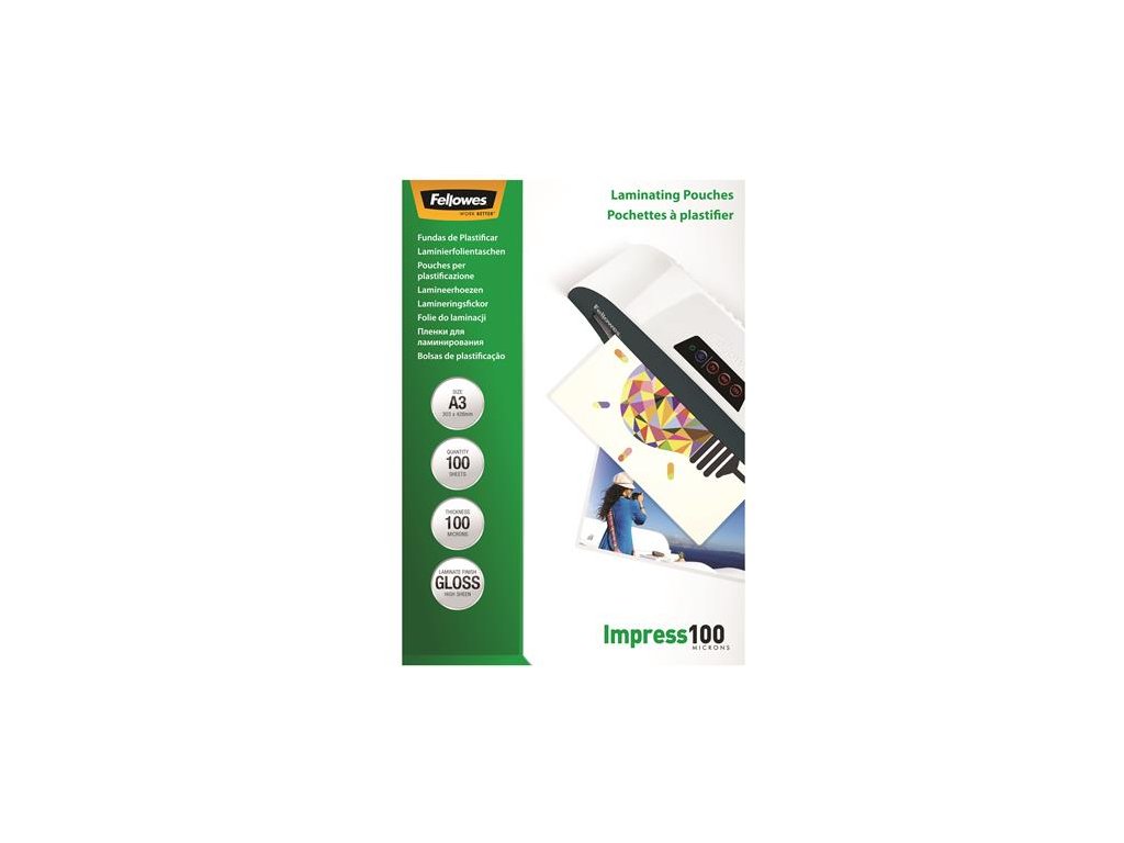 rozmer: A3 hrúbka: 100 mikrónov povrch: lesklý úroveň ochrany: zvýšená vhodné na lamináciu oznámení, fotografií, certifikátov, ako aj v oblasti hobby a remesiel balenie: 100 ks/bal Pre dokonalé výsledky a vynikajúcu spoľahlivosť vždy používajte laminovacie fólie Fellowes® pre laminovacie stroje Fellowes®!Dodatočné parametre