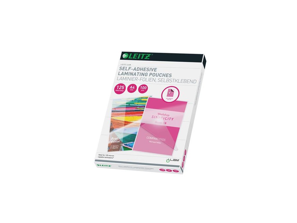 samolepiaca zadná strana vhodná na ľubovoľný rovný povch odstrániteľná bez stopy zaoblené rohy pre elegantný výsledok kompatibilita so všetkými laminovacími strojmi veľkosť: 216 x 303 mm (A4) Značka: LEITZ Výrobca: Esselte Kft. Adresa: 1139 Budapest, Lomb u. 37-39. A ép. II. 8., Hungary Web: https://www.accobrands.com/brands/ Email: hungarymarketing@acco.comDodatočné parametre