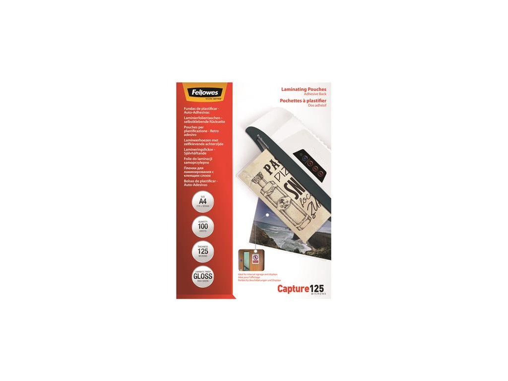 Laminovacia fólia, 125 mikr., A4, lesklá, samolepiaca, 100 ks, FELLOWES