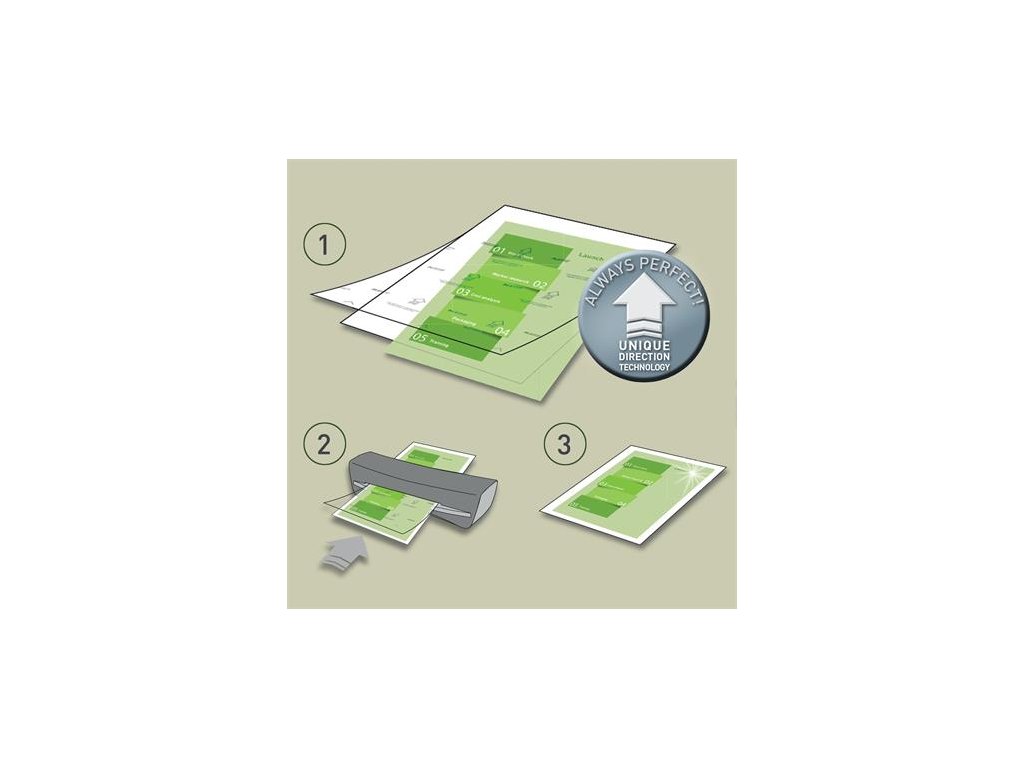 jednoduché používanie, bezproblémová laminácia s technológiou UDT Unique Direction Technology - jednoduché vloženie fólie do laminovacieho stroja pomocou šípok. Šípky po laminovaní zmiznú. lesklý povrch chráni dokumenty pred prachom a zašpinením kompatibilná s každým laminovacím strojom Značka: LEITZ Výrobca: Esselte Kft. Adresa: 1139 Budapest, Lomb u. 37-39. A ép. II. 8., Hungary Web: https://www.accobrands.com/brands/ Email: hungarymarketing@acco.comDodatočné parametre