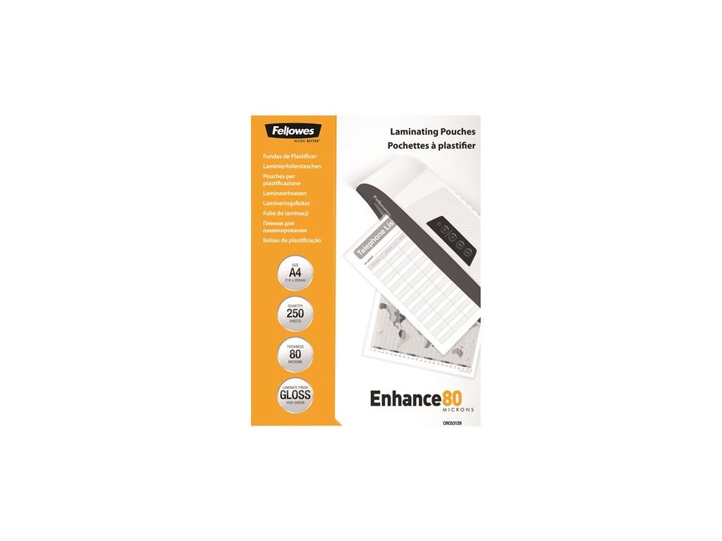 Laminovacia fólia, 80 mikr., A4, lesklá, 250 ks, FELLOWES