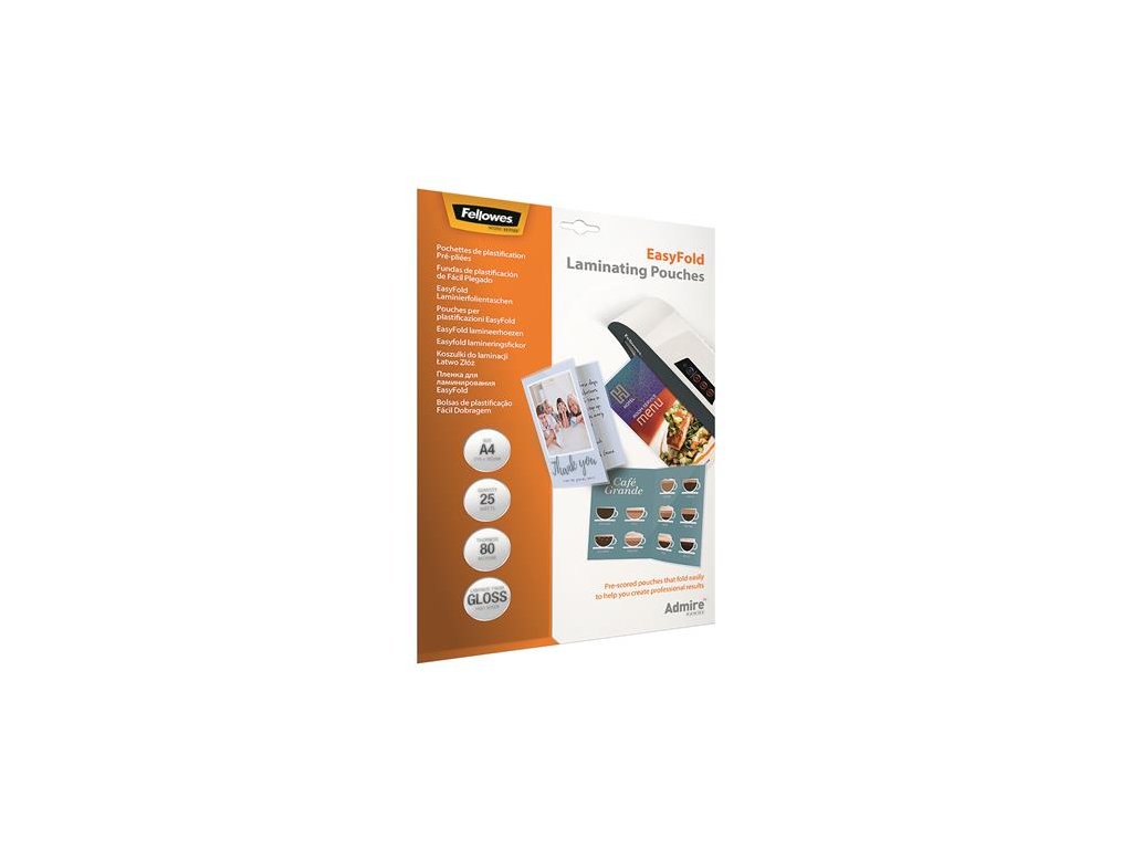 Laminovacia fólia, za tepla, 80 mikr., A4, lesklá, 25 ks, FELLOWES "Admire Easyfold"