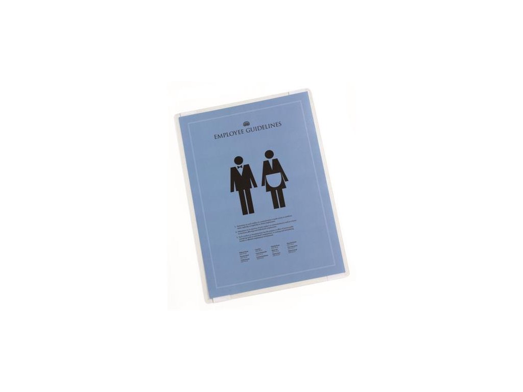 Na trvalé oznamy, napr. pracovné pokyny alebo návody na použitie.-samolepiace -nie je potrebný laminátor -použitie: na hladkých povrchoch -kapacita: 1 list -viacnásobne odnímateľné a znovu použiteľné -orientácia: na výšku/na šírku -formát: A4 -materiál: plast -rozmery: 210 x 296 mm (š x v)