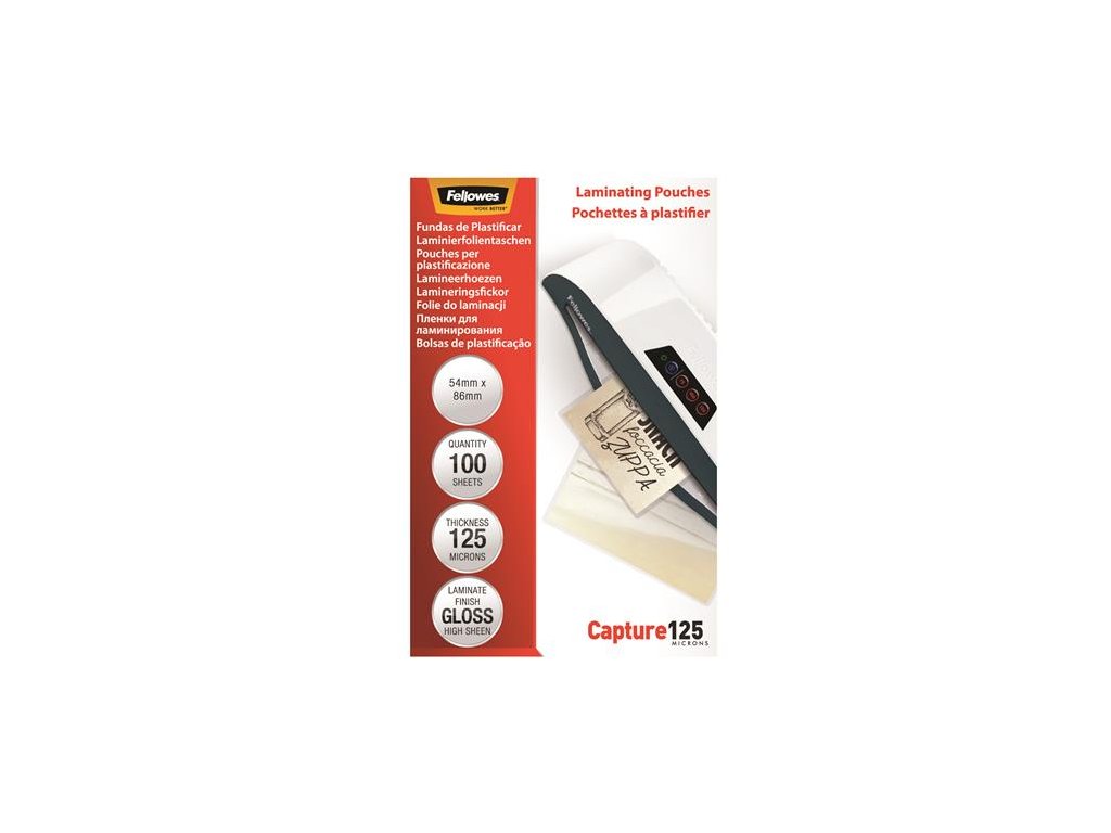 Laminovacia fólia za tepla, 125 mikr., 54x86 mm, lesklá, 100 ks, FELLOWES