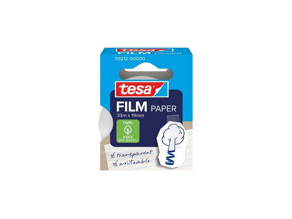 Priehľadná lepiaca páska tesafilm® s papierovým nosičom je mimoriadne všestranná a nemala by chýbať v žiadnej domácnosti, kancelárii ani škole. Dá sa popisovať a na svetlých povrchoch, ako je papier, je takmer neviditeľná.Presviedča jednoduchým použitím a všestrannosťou v každodennom živote. Vhodná na upevňovanie, označovanie, neviditeľné lepenie alebo opravu roztrhnutých stránok kníh bez ovplyvnenia čitateľnosti. Osvedčená kvalita tesa® je viditeľná aj pri používaní – páska sa odvíja potichu a vďaka papierovému nosiču sa ľahko trhá rukou. Pre presnejšiu aplikáciu je možné použiť vhodný odvíjač pásky. Spoľahlivá lepivosť je dosiahnutá vodou riediteľným akrylátovým lepidlom. tesafilm® papier je možné odstrániť z väčšiny hladkých povrchov bez zanechania zvyškov.