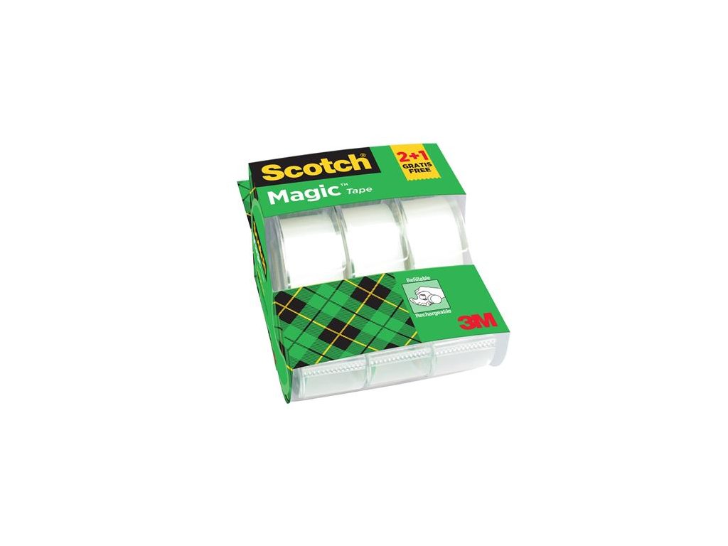 Lepiaca páska, s dispenzorom, ručná, 19 mm x 7,5 m, 3M SCOTCH "Magic Tape 810",2+1