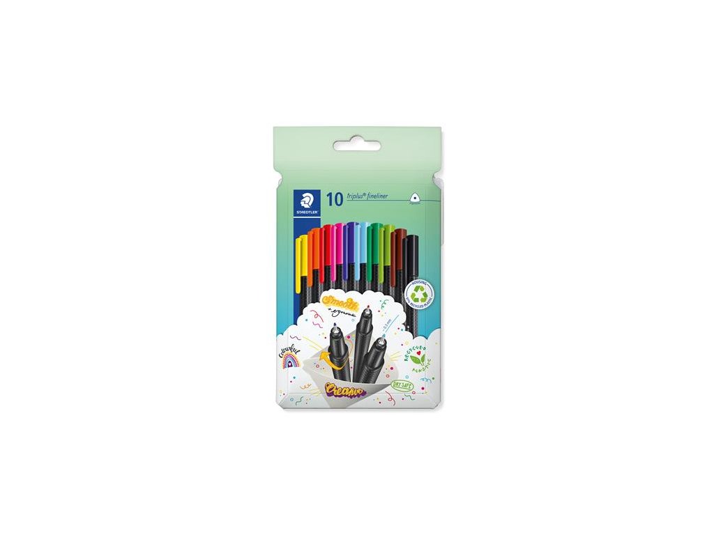 Liner, sada, 0,3 mm, STAEDTLER "Triplus 334", 10 rôznych farieb