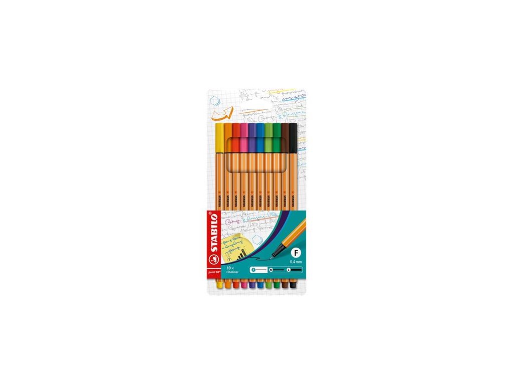 Liner, sada, 0,4 mm, STABILO "Point 88", 10 rôznych farieb