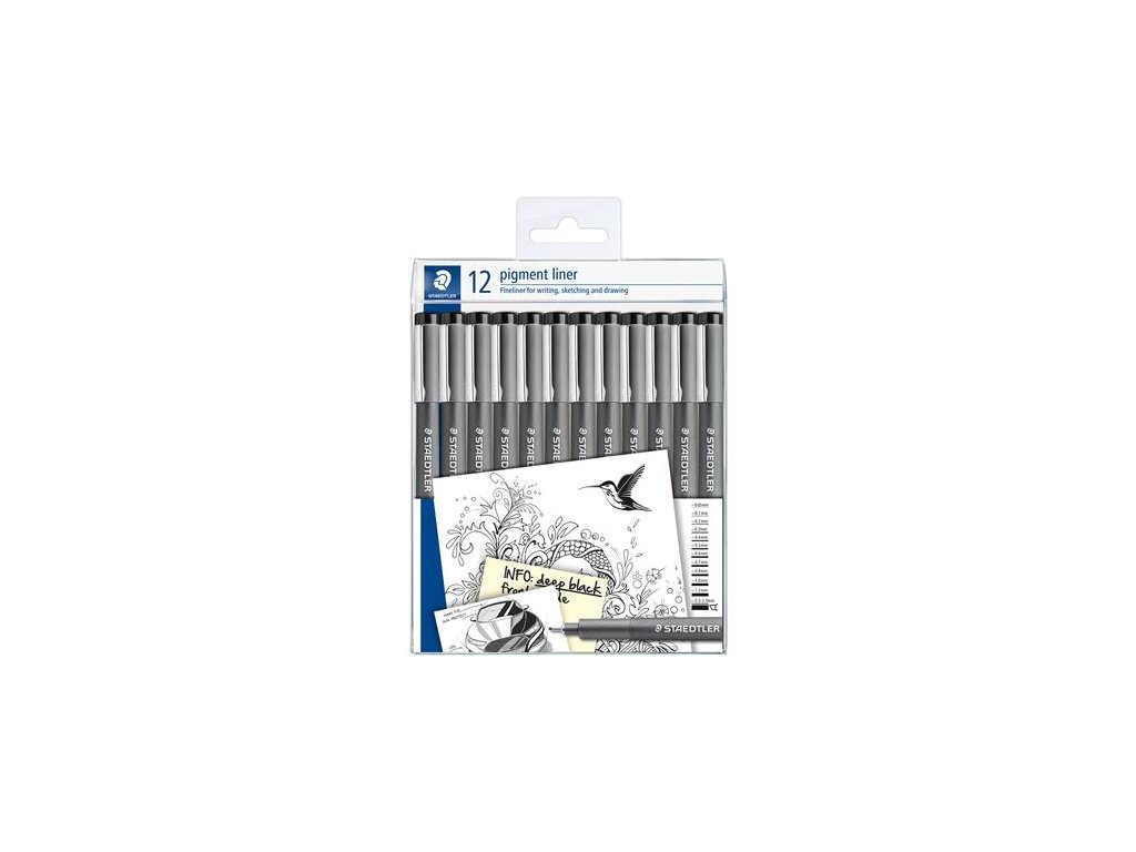 Liner, sada, 12 rôznych hrúbok, STAEDTLER "Pigment Liner 308", čierna