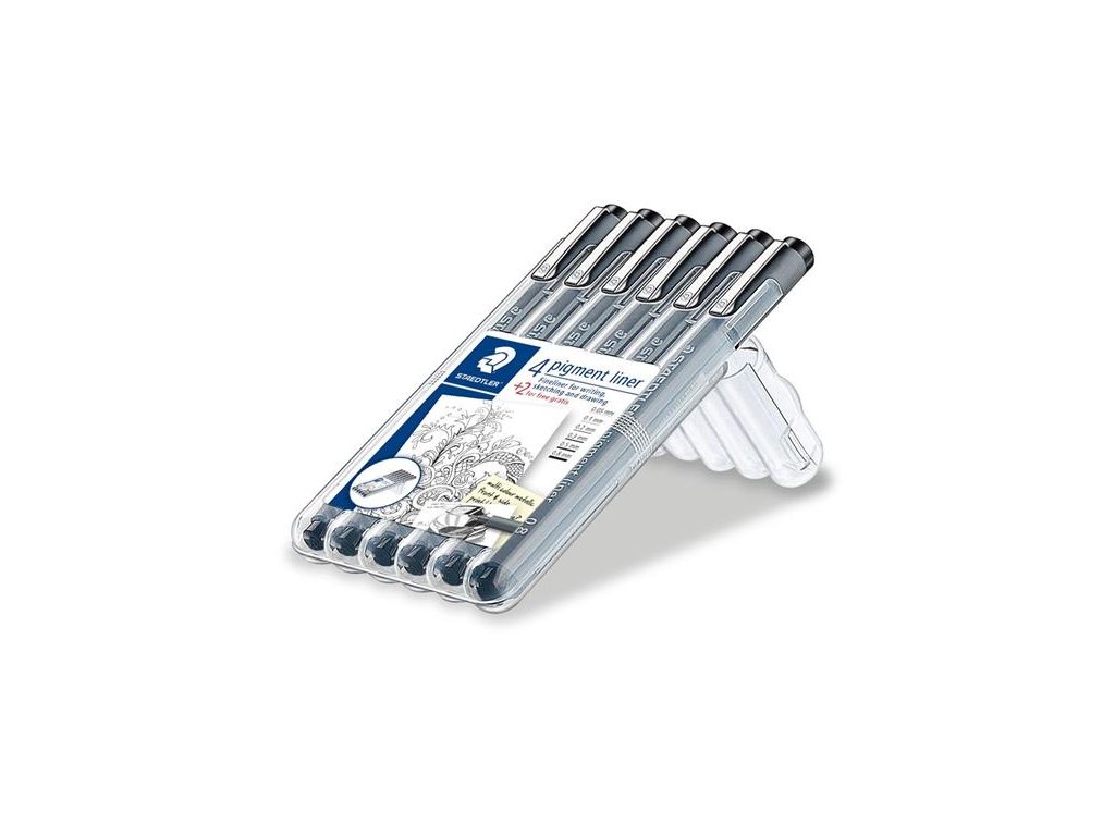 Liner, sada, STAEDTLER "Pigment Liner 308", 4+2 ks, čierna