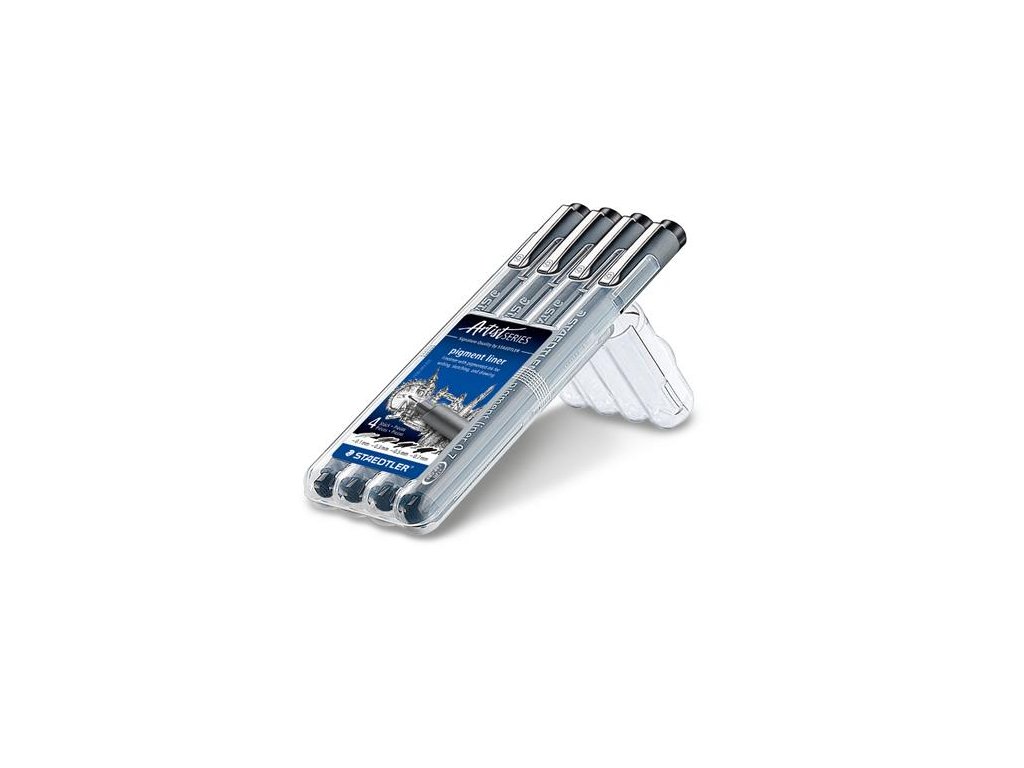 liner na kreslenie, písanie dlhý kovový hrot ideálny k šablónam, pravítkom pigmentový atrament, permanentný - neodstrániteľný (ISO 14145-2), vodeodolný "Cap off": bez uzáveru nevyschne 18 hodín (test: ISO 554 ) PP telo pera rôzne hrúbky písma (9), čierny atrament obsah sady: 4 x liner s rôznymi hrúbkami: 0,1/ 0,3 /0,5/ 0,7 mm Značka: STAEDTLER Výrobca: STAEDTLER SE Adresa: Moosäckerstr. 3 , 90427 Nuremberg, Germany Web: http://www.staedtler.com Email: https://www.staedtler.com/intl/en/service/contact/Dodatočné parametre
