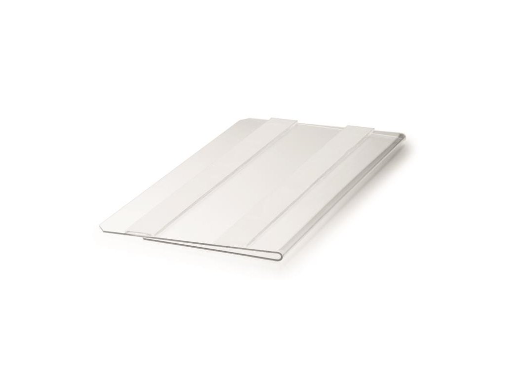 • Vrecko na etikety z priehľadnej pevnej PET fólie s dvoma permanentnými lepiacimi prúžkami na zadnej strane.• Lepiace prúžky je možné odstrániť bez zanechania zvyškov.